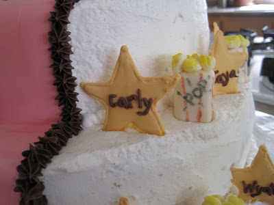 May 14, 2011- This cake was made for my daughters first piano recital. It is a delish marble cake with buttercream frosting with a fondant red carpet and royal icing stars with all the students names on them! Oh, and chocolate popcorn bags!